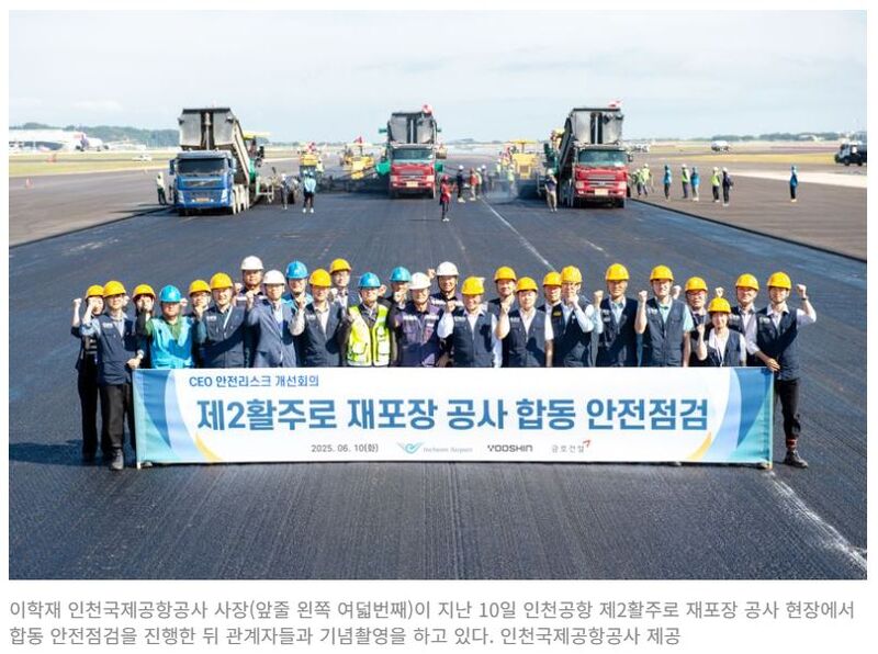 인천국제공항공사는 지난 10일 인천공항 제2활주로 재포장 공사 현장에서 이학재 사장 주관으로 합동 안전점검을 시행했다고 11일 밝혔다.