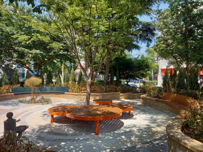 또한, 주민 의견을 반영해 중앙에 원형 평상과 테이블, 음수전 등을 설치해 주민 휴식과 소통 공간으로 활용되도록 했다.