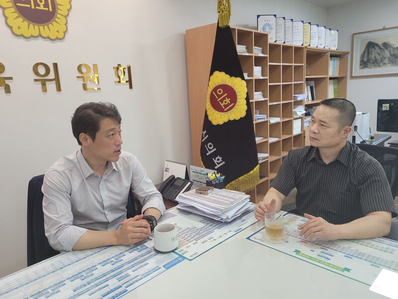 이용창 인천시의회 교육위원장을 인천시의회 교육위원장실에서 미디어k뉴스 정핑진회장이 인터뷰를 통해 교육에 관한 의정철학을 들었다. 이용창 위원장은 9대 전반기 성과에 이어 후반기 의정 철학을 밝혔다.