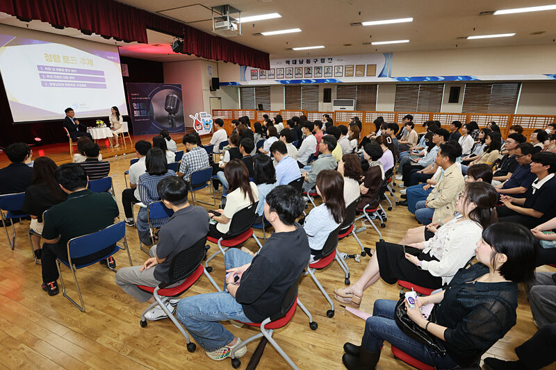 이번 토크쇼에는 박종효 구청장이 직접 대담자로 참석해 직원들의 고민과 어려움을 경청하고 허심탄회하게 이야기를 나누는 시간으로 꾸며졌다.