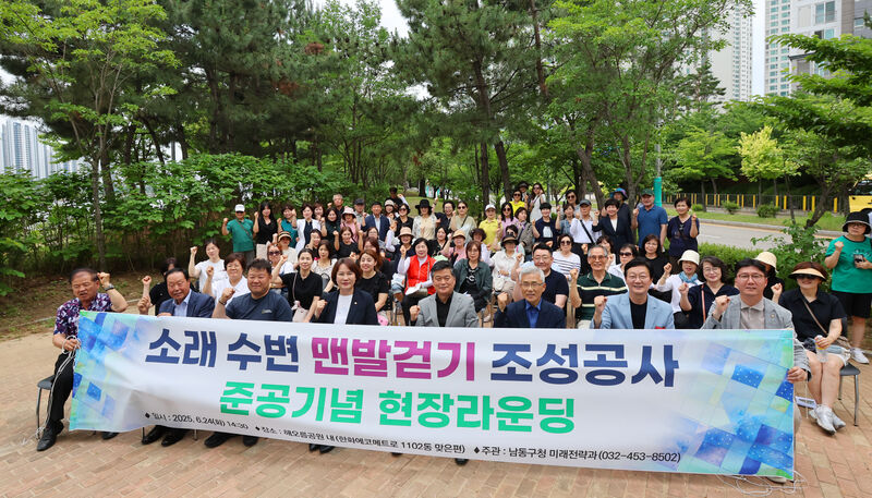 지난 24일 사업 준공을 기념해 열린 맨발 걷기 행사에는 논현1동·논현2동·논현고잔동 주민 100여 명이 참석해 완성된 현장을 둘러보고, 직접 맨발 걷기 산책로를 체험하는 시간을 가졌다.