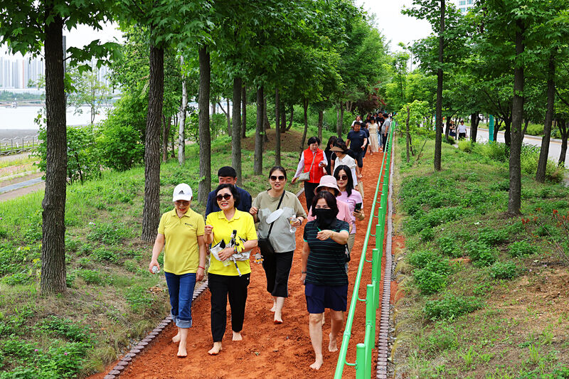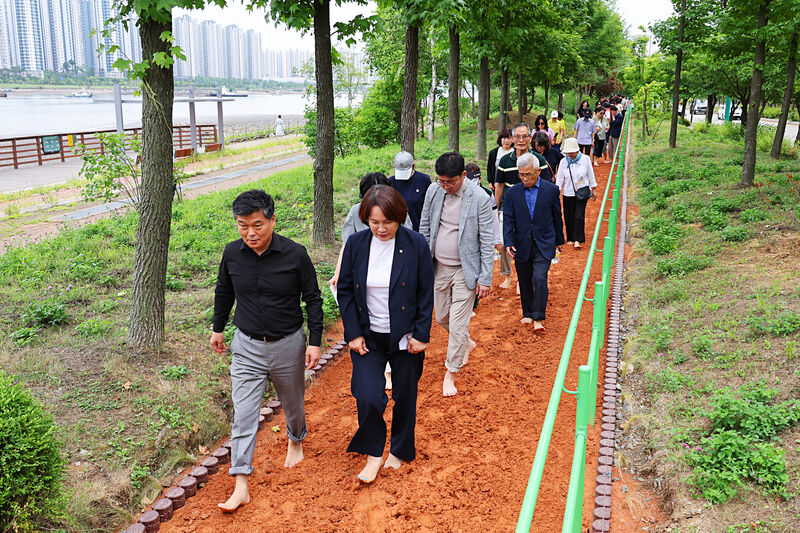 인천 남동구(박종효 구청장)는 6월 24일 화요일 논현동 해오름공원 내(논현동 775 일원) 소래 수변 맨발 걷기 조성 준공을 하여 시민들과 함께 라운딩을 했다고 24일 밝혔다.