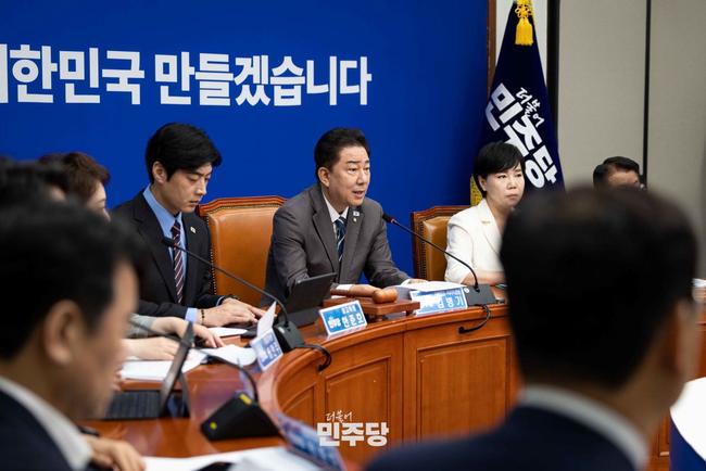김병기 당대표 직무대행 및 원내대표가 2025.07.07.(월) 국회 본청 당대표회의실에서 열린 최고위원회의를 주재하고 있다.