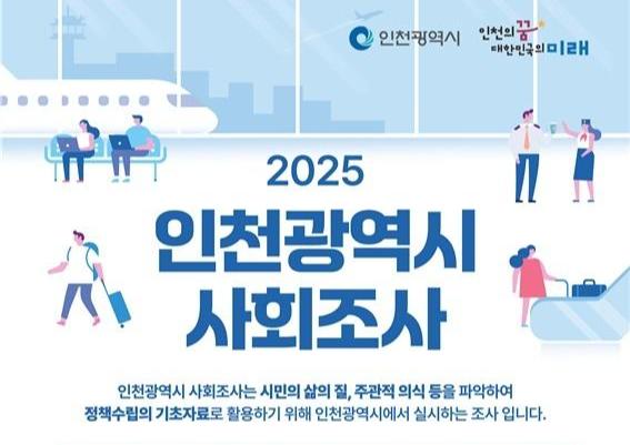 인천광역시(시장 유정복)는 오는 8월 4일부터 9월 19일까지 시민 삶의 질과 지역 사회 전반의 현황을 파악하기 위한 `2025년 인천사회지표조사`를 실시한다고 밝혔다.