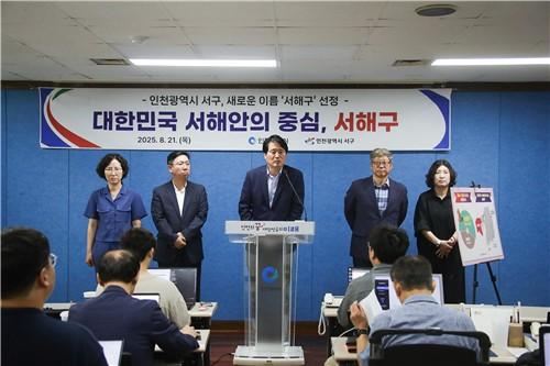인천 서구(구청장 강범석)는 21일 목요일 인천시청 브리핑룸에서 기자회견을 열고, 행정 체제 개편에 따라 검단구와 분리되는 서구의 새로운 명칭으로 `서해구(西海區)`를 최종 선정했다고 공식 발표했다.