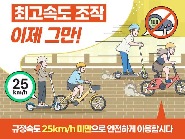 현재 국내법상 전동킥보드와 전기자전거는 시속 25km 미만으로만 운행이 가능하다. 그러나 일부 이용자들이 최고속도 제한을 불법으로 해제해 많게는 시속 100km까지 주행하는 사례가 발생하고 있으며, 이는 탑승자뿐 아니라 보행자의 안전에도 심각한 위협이 되고 있다.