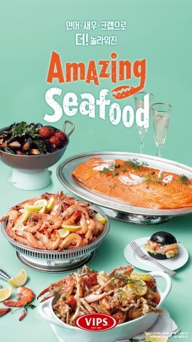 ‘어메이징 씨푸드(amazing seafood)’라는 콘셉트로, 빕스에서 독보적인 사랑을 받았던 훈제 연어와 새우·크랩을 앙코르 출시했다. 이 외에 대구·홍합 등을 활용해 한층 가치를 높인 새로운 해산물 메뉴를 대거 선보인다.