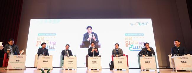 기조 강연 후에는 폴 김 교수를 좌장으로 도성훈 교육감, 김일환 제주대 총장, 이찬규 중앙대 부총장, 김병찬 경희대 교수, 조병영 한양대 교수, 박원유 구글코리아 교육사업본부장이 참여한 패널 토론이 이어졌다.