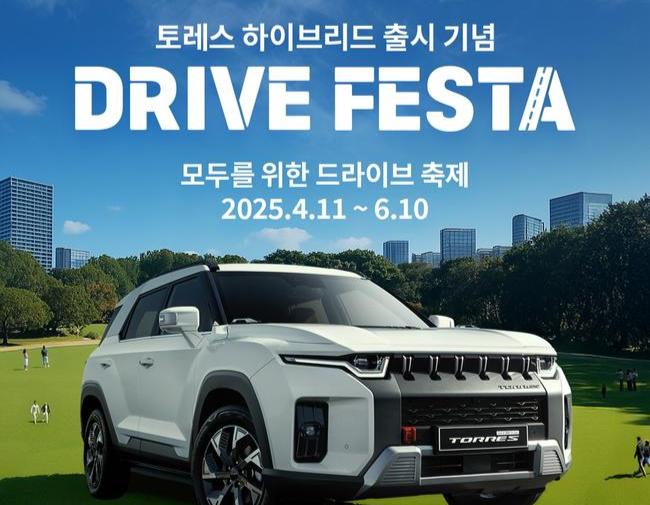 KG 모빌리티(KGM)가 토레스 하이브리드 론칭을 기념해 `모두를 위한 드라이브 축제, 드라이브 페스타` 시승 이벤트를 개최한다고 11일 밝혔다.