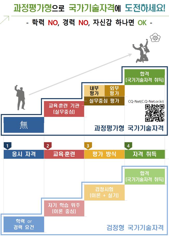특히 과정평가형은 별도의 응시자격을 요구하지 않아 경력이 없거나 비전공자도 산업기사 이상 자격에 도전할 수 있다는 점이 특징이다. 실제로 2025년에는 직업계고 학생 3,487명이 과정평가형 교육·훈련을 통해 산업기사 자격을 취득했다. 교육은 직업계고와 대학, 폴리텍 등에서 개설된 과정에 참여하거나, 직업훈련기관에서 국민내일배움카드를 활용해 수강할 수 있다.