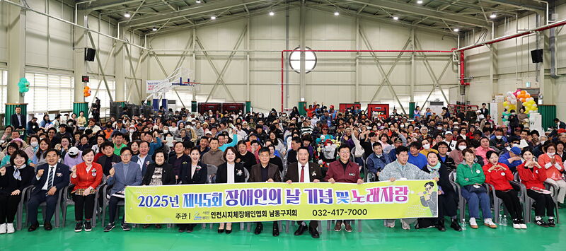 인천시 지체장애인협회 남동구지회는 최근 남동구 어울림체육관에서 제45회 장애인의 날을 맞아 행복·일상·희망을 주제로 기념식과 노래자랑을 개최했다고 22일 전했다.