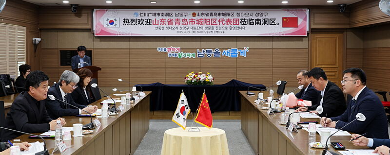 인천시 남동구는 지난 22일 해외 우호 도시인 중국 칭다오시 성양구의 교굉천(矫宏川중일 협동발전촉진센터 당조서기 등 방문단이 남동구를 방문했다고 23일 밝혔다