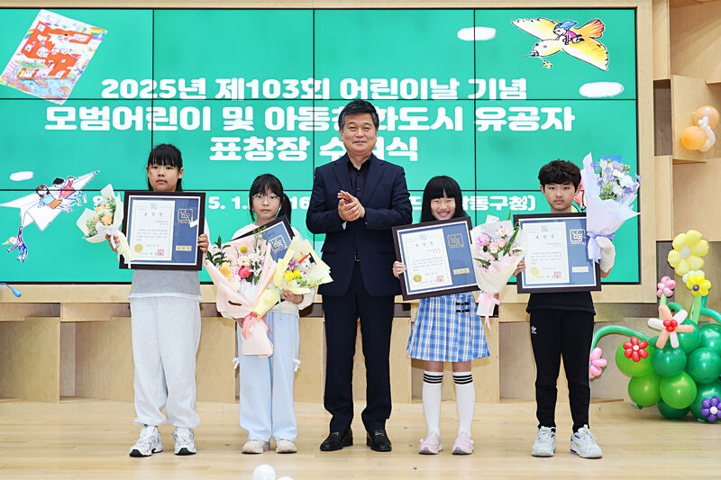 인천시 남동구는 지난 1일 구청 뜨락에서 제103회 어린이날 기념 모범어린이 및 아동친화도시 조성 유공자 표창장 수여식을 진행했다고 2일 밝혔다.