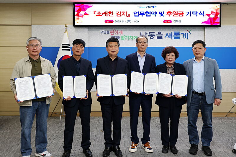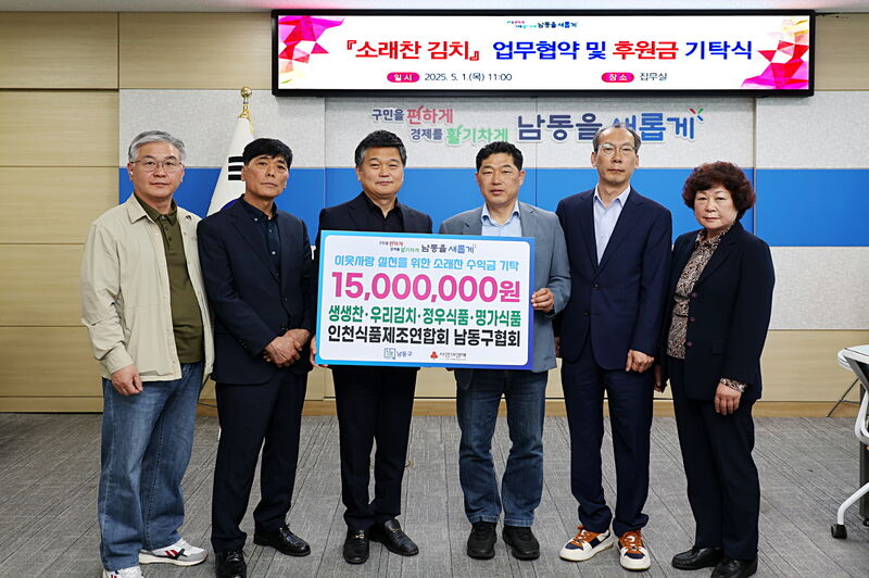 협약식과 기탁식에는 박종효 남동구청장을 비롯해 최종환 식품제조연합회 남동구협회장, 소래찬 김치제조업체 대표 등이 참석했다.