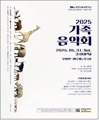 `2025 가족음악회`는 전석 1만 원으로, 인천문화예술회관과 엔티켓 및 인터파크 티켓에서 예약 가능하다.