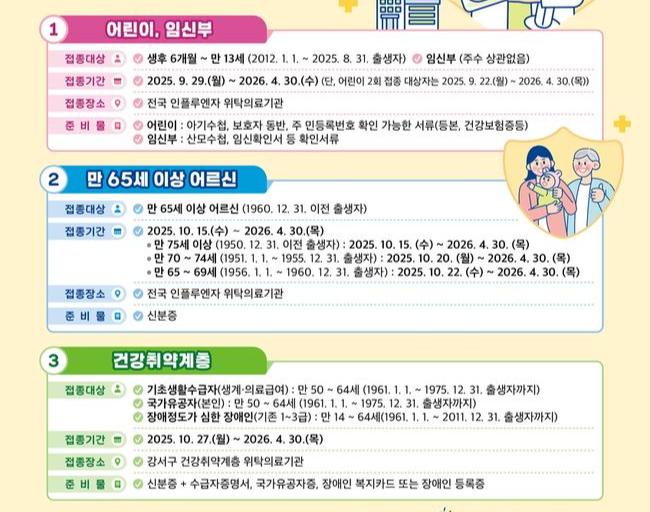 구 관계자는 "어린이, 임신부, 어르신은 감염 시 폐렴 등 합병증 위험이 상대적으로 높아 인플루엔자 예방접종이 더욱 중요하다"며, "본격적인 유행 전에 예방접종을 완료해 주시기를 당부드린다"고 말했다.