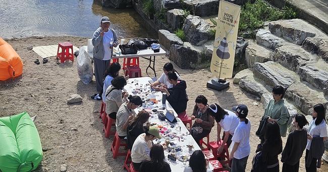 덕성여대 정문 앞 우이천변에서 진행된 〈2025 돌탑제 : 우이의 우리를 엮다〉 현장. 학생과 지역주민들이 함께 어우러지며 예술로 `우리`를 엮는 시간을 가졌다.