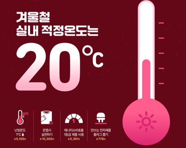 정부는 우리나라 국민의 겨울철 난방 사용이 과도하게 높다는 지적이 꾸준히 제기돼 온 만큼, 올해도 적정 실내온도 20℃를 지키는 겨울철 에너지절약 캠페인을 추진한다고 설명했다.