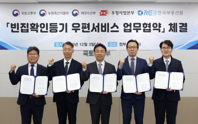 국토교통부는 12월 3일 한국부동산원과 관계부처가 ‘빈집확인등기 우편서비스’ 업무협약을 체결하고 경기 광주시와 경북 김천시 등을 대상으로 시범사업을 추진한다고 밝혔다.